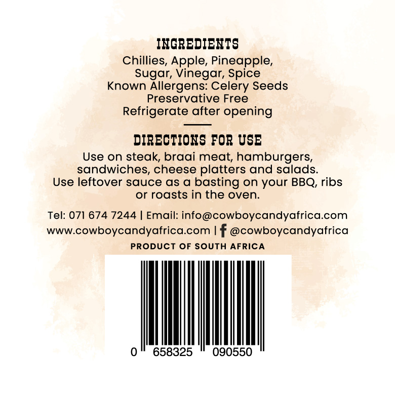 This apple version of the candied jalapeño chilli can be used on steak, braai meat, hamburgers, sandwiches or cheese platters and salads. The leftover sauce in the bottle can be used as a tasty basting on your ribs or roasts in the oven.