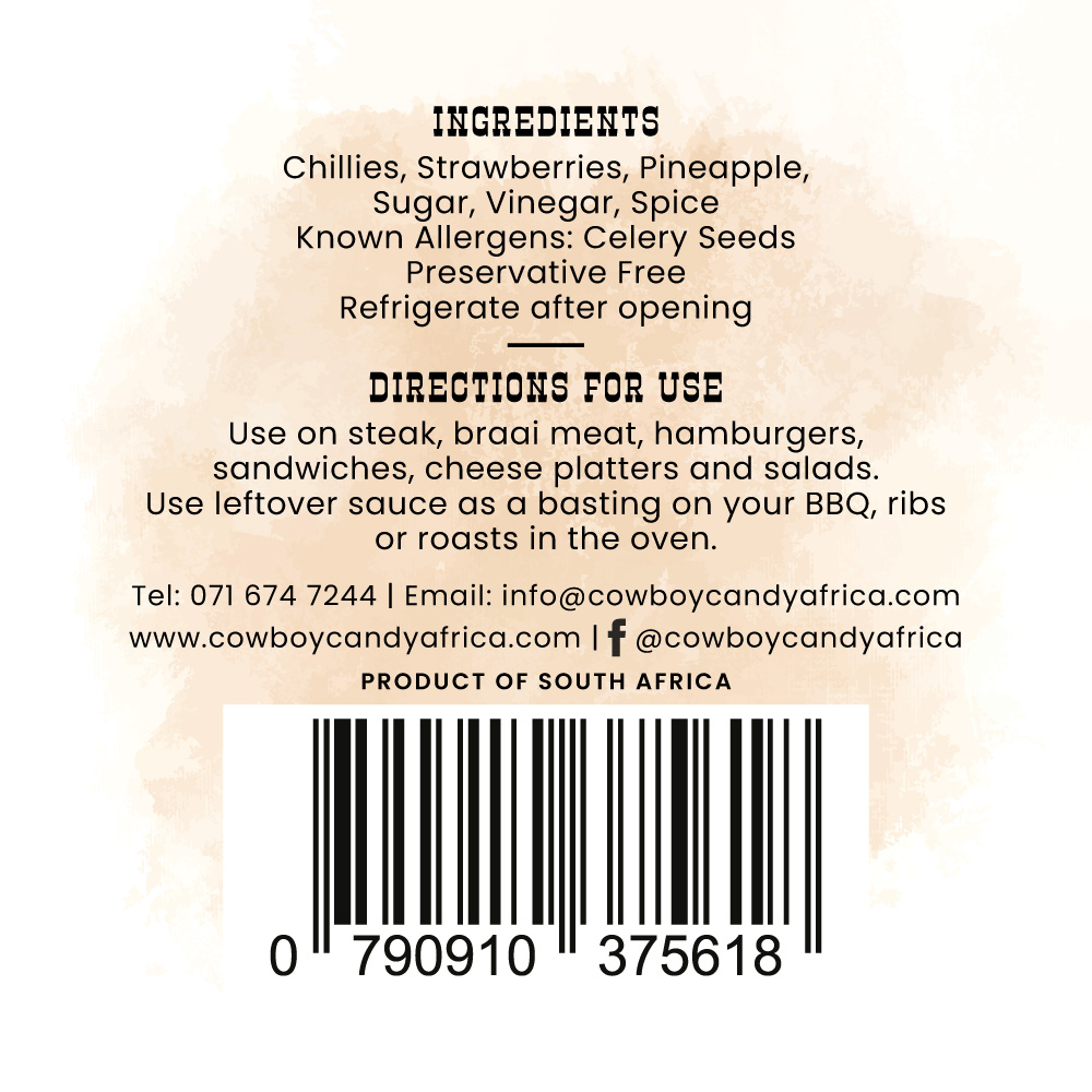 • Chillies, Strawberries, Pineapple, Sugar, Vinegar, Spice